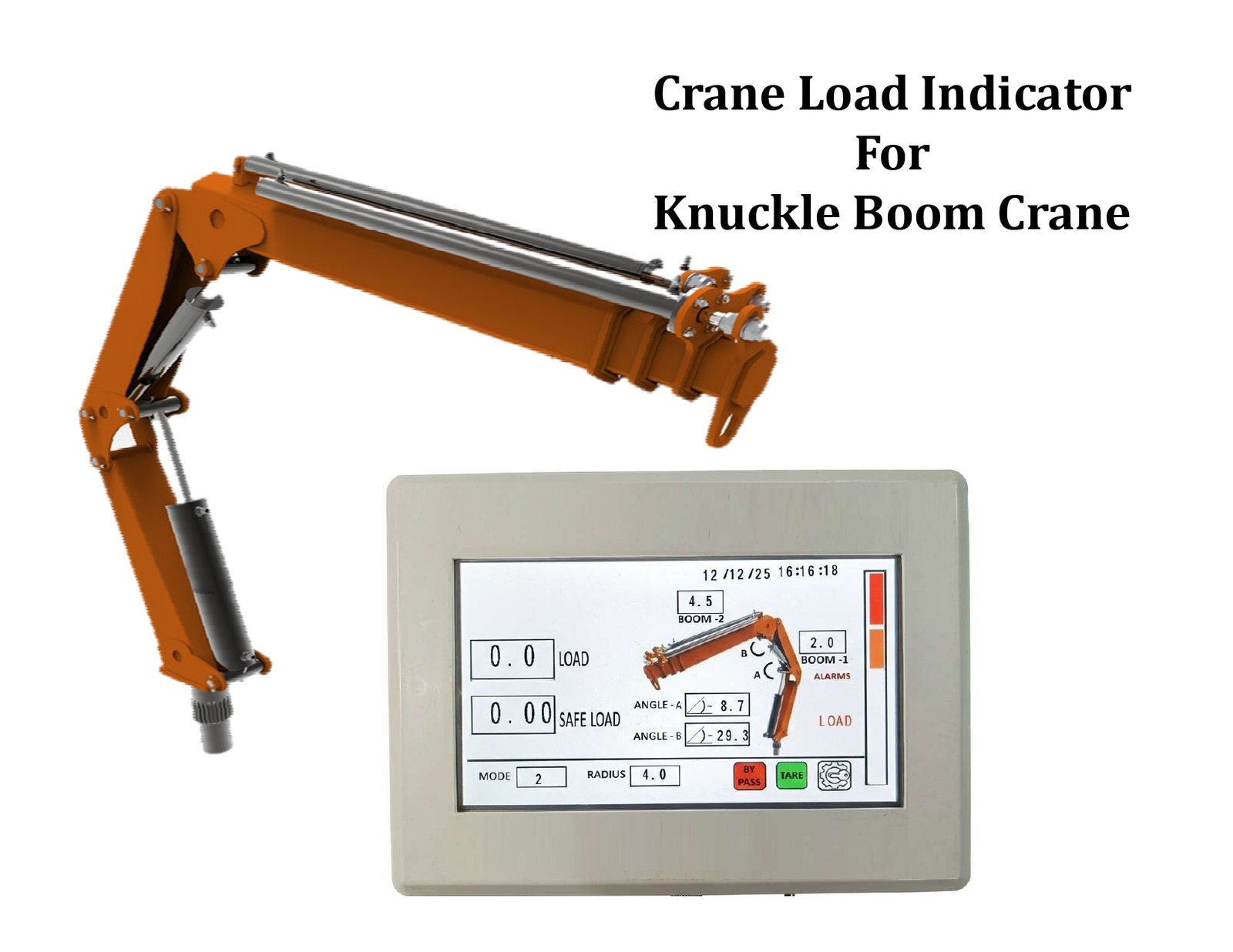 Our crane load moment indicator is a safety device that measures and monitors the weight and angle of a crane's boom. It calculates the load moment on the crane based on the boom angle, length, and weight of the load, providing real-time data and alerts to the crane operator when the crane approaches its load limits.