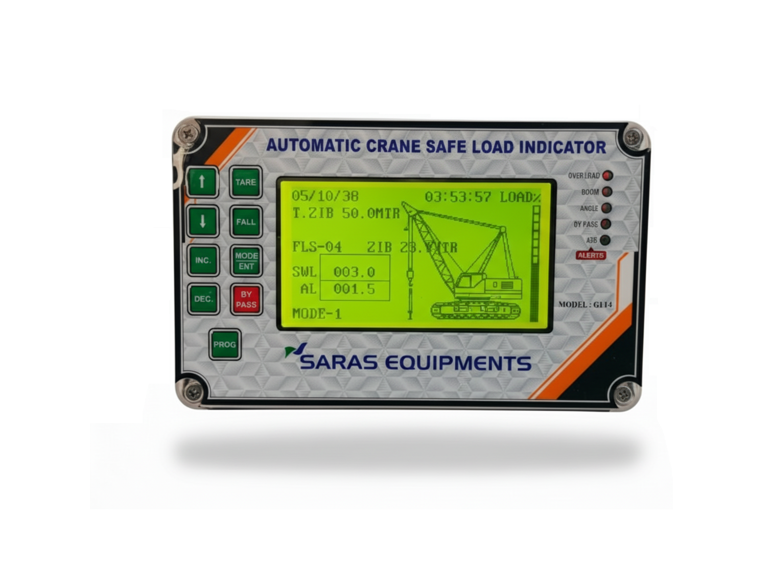 Crane Safe Load Indicator (SLI) for Crawler Cranes with Graphical Display is an advanced safety device designed to ensure safe lifting operations by providing real-time monitoring of critical crane parameters. It displays essential information such as load weight, safe load limits, boom angle, operating radius, and ground conditions directly on a high-resolution graphical screen.